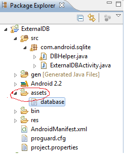 This is tutorial for accessing external DB from assets folder. In android We can create sqlite database by using SQLite Database Browser. Now the question is how to access this database in source code. The answer is very simple. Store the database in assets folder that is placed in project folder.
